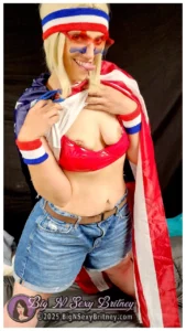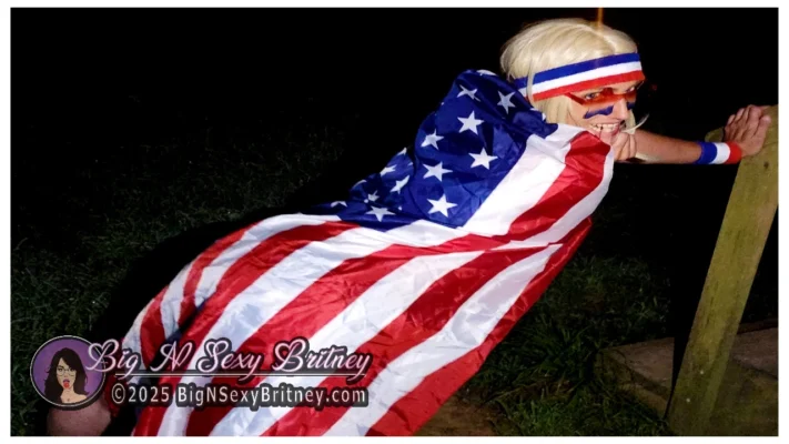 If you wanna see how this American Woman handles the challenge, and what I look like with a white tee, jean shorts, red, white, and blue sunglasses and an American flag cape, be sure you don’t miss this one! I PROMISE you won’t be disappointed! I did some especially goooooood work this week!