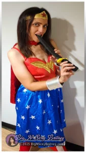 Hey guys! Big N Sexy Britney here! Just in time for Halloween, this week’s theme is “Wonder Woman”! I love getting costumed-out as my favorite superhero and using my magical dick-sucking powers to make Superman’s day… 😊